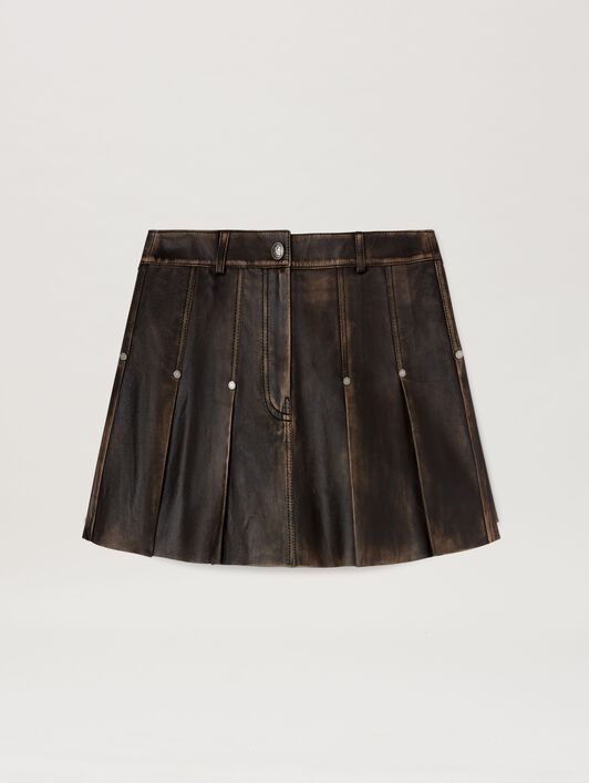 Curved logo Leather miniskirt