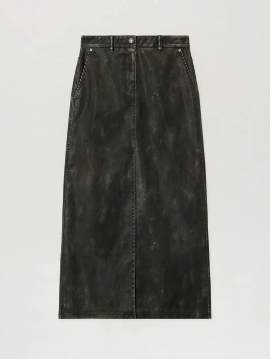 Curved Logo Coated Long Skirt