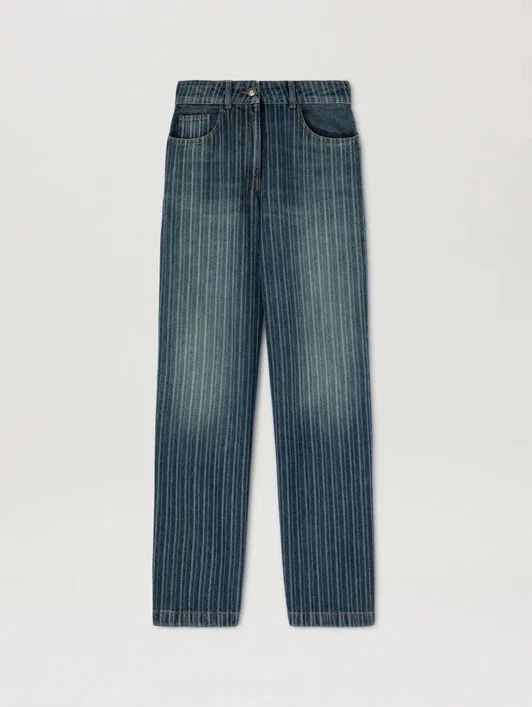 Laser pinstriped denim pants